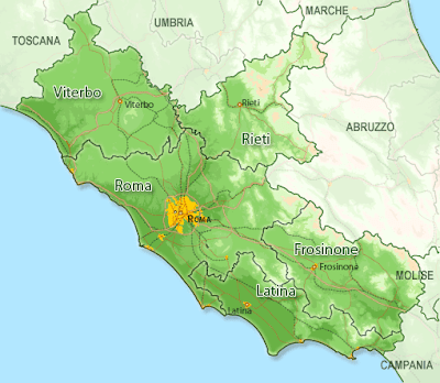 Lazio Map : Lazio Map Highlights The Provinces, Major Cities, Region Capital, Roads, Highways Along With Province Boundaries And Regional Boundaries Of Lazio In Italy.